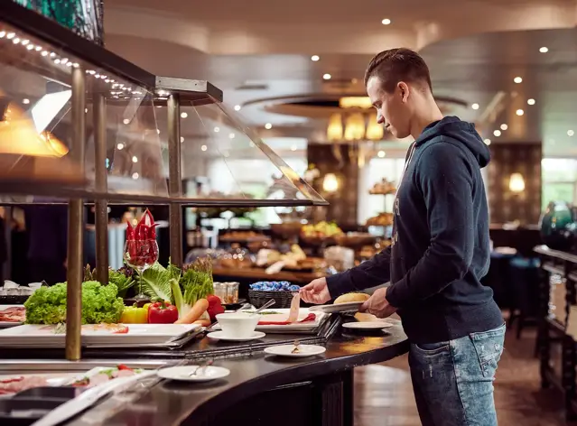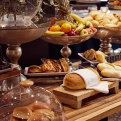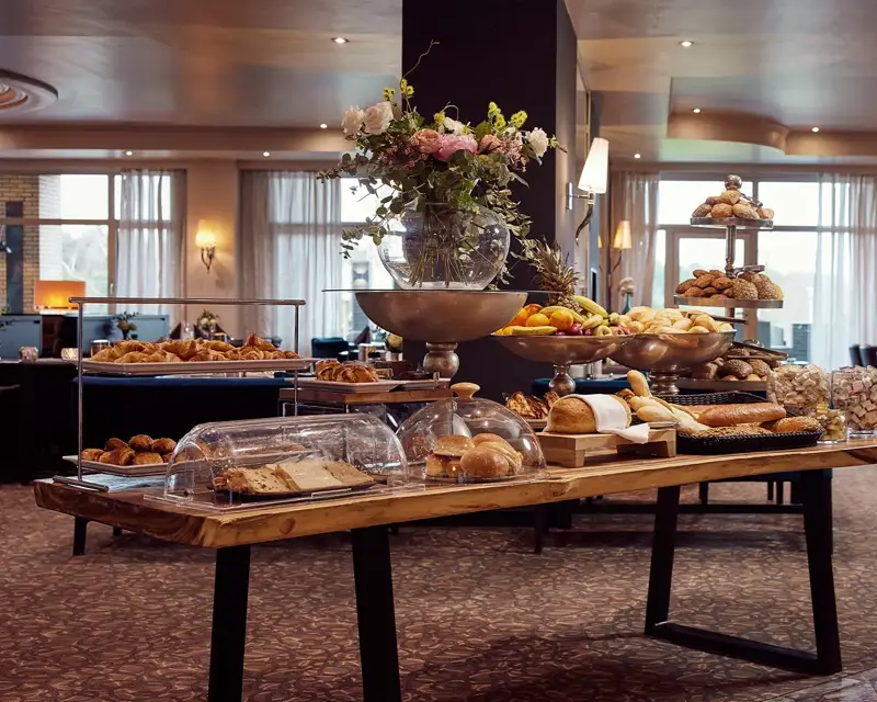 Fresh coffee or tea to wake up and enjoy the wide range of our breakfast buffet. Enjoy crispy rolls, bread, scrambled eggs, cold cuts, muesli, fresh fruit, and much more.