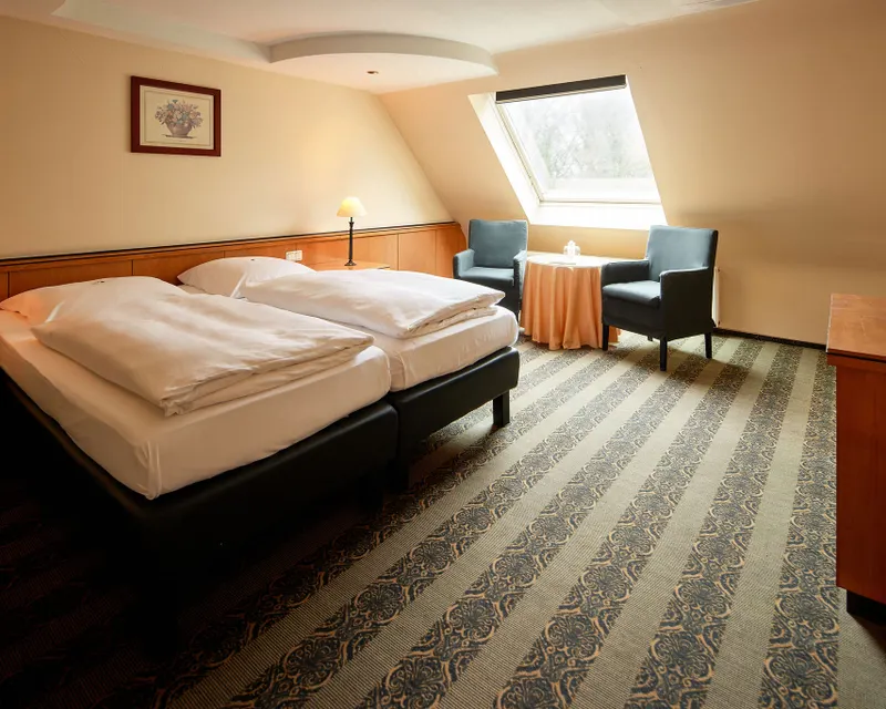 Al onze standaard kamers zijn voorzien van: een zithoek, bureau, een garderobekast, TV met internationale zenders, gratis WiFi, airconditioning en een badkamer met douche en bad, wc en föhn.